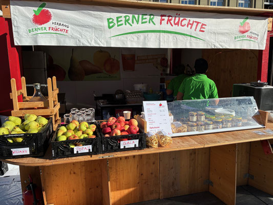 Die Sichlete vom Montag, 15.09.25 war wiederum ein Erfolg. Bei schönstem Herbstwetter präsentieren sich zahlreiche landwirtschaftliche Produzenten mit Tieren, Produkten und viel Brauchtum der städtischen Bevölkerung. Der Verband Berner Früchte konnte am Stand eine breite Auswahl von Produkten wie verschiedene Apfelsorten, Most, Honig etc. präsentieren. Die beliebten Apfelchüechli erfreuten sich einer hohen Nachfrage.