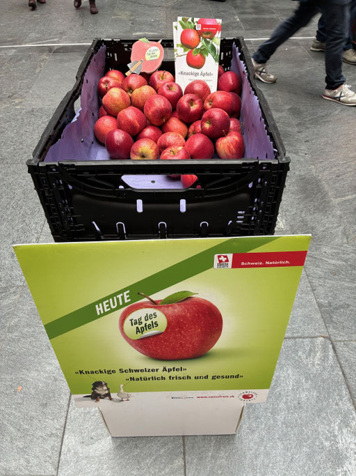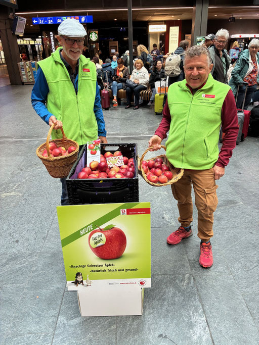 Zu Ehren des Tag des Apfels 2025 wurden im Bahnhof Bern zahlreiche Äpfel abgegeben und der Bevölkerung den Wert von Schweizer Früchten vermittelt.